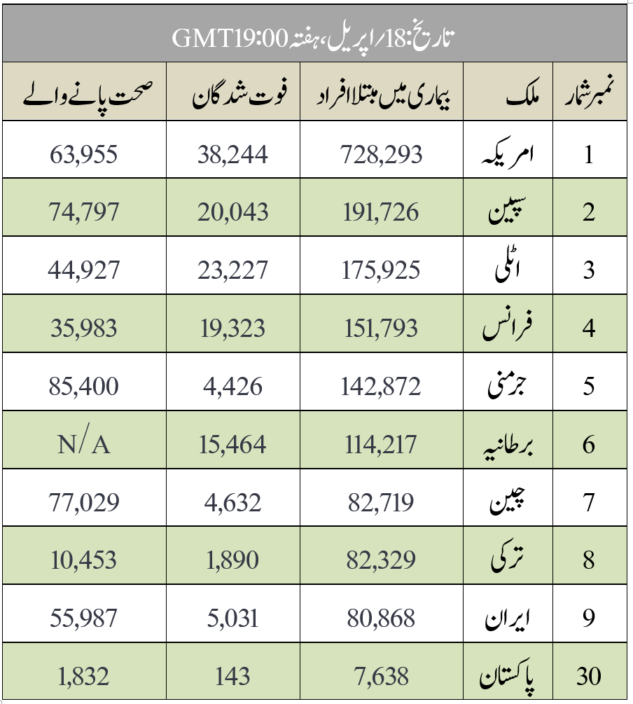 Covid-19 بلیٹن (نمبر 21، 18؍اپریل 2020ء)