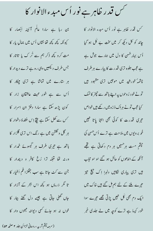 کس قدر ظاہر ہے نور اُس مبدء الانوار کا