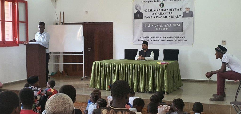 جلسہ سالانہ پرنسپ کی تاریخ:ساؤتومے ملک میں جلسہ سالانہ ۲۰۰۸ءسےالا ما شاءاللہ تقریباً ہر سال منعقد ہوتا رہا ہے۔ ۲۰۱۸ء میں پرنسپ جزیرے پر بھی جماعت کا پودا لگ گیا تھا۔ لیکن دونوں جزیروں کے درمیان بڑے سفر کی وجہ سے نومبائعین کا ساؤتومے کے نیشنل جلسہ سالانہ میں شامل ہونا ممکن نہ تھا۔ اس لیے سیدنا حضرت خلیفۃ المسیح الخامس ایدہ اللہ تعالیٰ بنصرہ العزیز کی اجازت سے مئی ۲۰۲۲ء میں پرنسپ جزیرے کا پہلا جلسہ سالانہ منعقد کیا گیا۔ اس جزیرے پر دو مساجد تعمیر ہو چکی ہیں۔ نومبائعین ایمان و وفا میں بڑھ رہے ہیں۔ الحمد للہ۔