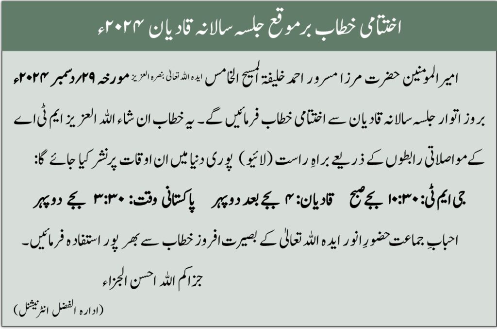 صفحۂ اول/متفرق/اختتامی خطاب بر موقع جلسہ سالانہ قادیان ۲۰۲۴ء متفرق اختتامی خطاب بر موقع جلسہ سالانہ قادیان ۲۰۲۴ء24 دسمبر 2024ء0 ایک منٹ سے بھی پہلے Facebook X WhatsApp Telegram Viber Share via Email Print 24 دسمبر 2024ء0 ایک منٹ سے بھی پہلے Facebook X WhatsApp Telegram Viber Share via Email Print