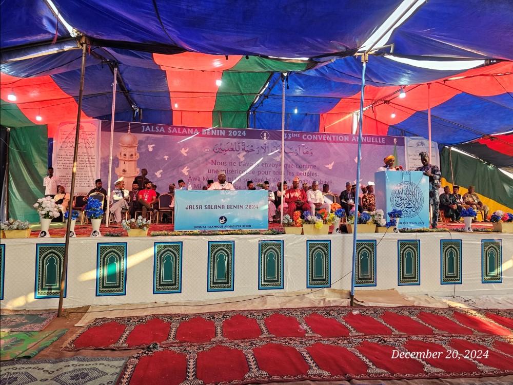 محض اللہ تعالیٰ کے فضل و کرم سے جماعت احمدیہ بینن کو اپنا تینتیسواں جلسہ سالانہ مورخہ ۲۰ تا ۲۲؍دسمبر ۲۰۲۴ء ریجن پوبے (Pobe) کے شہر کے تو(Ketou) میں موجود جماعت کی وسیع زمین ’’بستان مہدی‘‘ میںمنعقد کرنے کی توفیق ملی۔ جلسہ سالانہ کی تیاریوں کا کام ایک ماہ قبل ہی شروع ہوگیا تھا۔