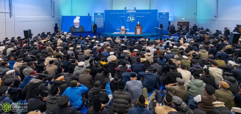 تشہد، تعوذ اور سورۃ الفاتحہ کی تلاوت کے بعد حضورِانور نے فرمایا کہ حضرت اقدس مسیح موعودؑ کا یہ دعویٰ کہ مَیں ہی وہ مسیح موعود و مہدی معہود ہوں جس کی پیش گوئی رسول اللہﷺ نے فرمائی تھی، اور اب کوئی مسیح و مہدی نہیں آئے گا۔ آپؑ کے لیے وہ تمام نشانات ظاہر ہوئے اور وہ تمام پیش گوئیاں پوری ہوئیں جو رسول اللہﷺ نے فرمائی تھیں۔ آپؑ نے تمام دنیا کو عموماً اور مسلمانوں کو خصوصاً دعوت دی کہ آنحضورﷺ کی پیش گوئیوں میں غور کرو اور سمجھو کہ اسی میں سعادت ہے۔ اسی میں اللہ تعالیٰ اور اس کے رسولؐ کے حکموں کی تعمیل ہے۔ آپؑ نے واضح فرمایا کہ مجھ پر یہ الزام نہ دو کہ مَیں نے نعوذ باللہ آنحضورﷺ کی توہین کی ہے۔ یہ سراسر جھوٹا الزام ہے۔