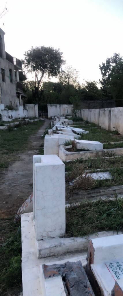 احمدیہ قبرستان کوٹلی شہر ضلع آزاد کشمیر میں ۷۶ احمدیوں کی قبروں کے کتبے انتہاپسندوں نے توڑ دیے