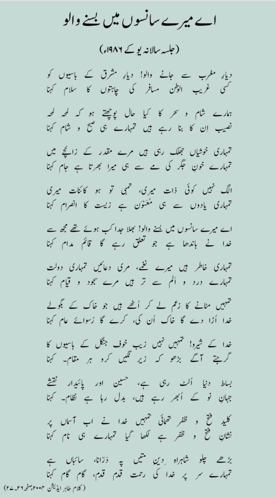 دیارِ مغرب سے جانے والو! دیارِ مشرق کے باسیوں کو