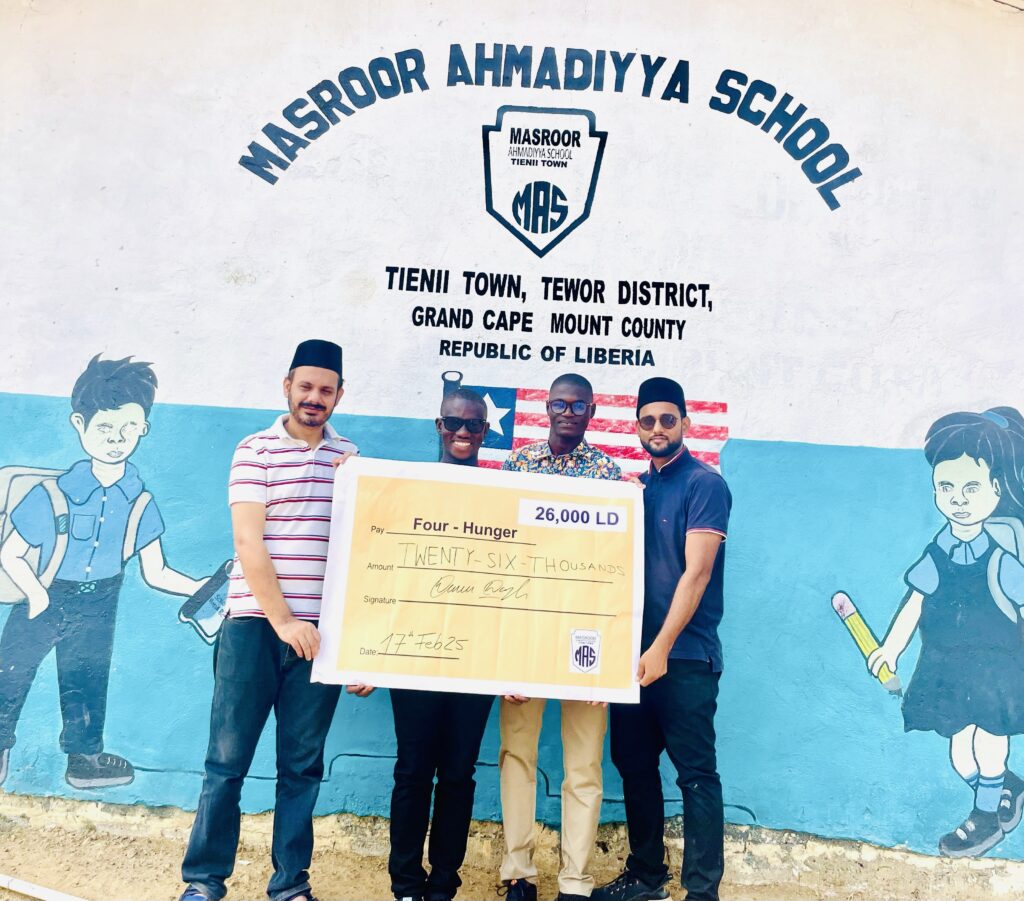 ۱۷؍فروری۲۰۲۵ء کو ایک امریکی رفاہی تنظیم ’Four Hunger‘ جس کا مشن ہر ایک کے لیے پینے کے صاف پانی اور خوراک کی فراہمی کے ليے کوشش کرنا ہے، کے شریک چیئرمین جناب Windell S. Kingنے اس سکول کا دورہ کیا۔ انہوں نے اپنے آنے کا مقصد طلبہ سے ملاقات کرنا، تعلیم کی اہمیت کو اجاگر کرنا اور طلبہ کو بلامعاوضہ خدمت انسانیت کرنے پر ایک لیکچر دینا بتایا۔مزید یہ کہ موصوف دیکھنا چاہتے تھے کہ کس طرح جماعت احمدیہ ایک دُور افتادہ مقام پر سکول چلارہی ہے۔ اس روز سکول میں ایک تقریب کا اہتمام کیا گیا۔ لیکچر کے بعد مکرم پرنسپل صاحب نے جماعت احمدیہ لائبیریا کی تعلیم و صحت کے میدان میں دیگر ادارہ جات کی خدمات کا بھی ذکر کیا۔ سکول کا نظم و نسق اور دیگر خدمات کوسن کر موصوف بہت متاثر ہوئے اور جلد دوبارہ آنے کی خواہش کا اظہار کیا۔ تقریب کے اختتام پر مسرور احمدیہ سکول کی جانب سے ’Four Hunger‘تنظیم کو ۲۶؍ہزار لائبیرین ڈالرزبھی عطیہ کیے گئے۔