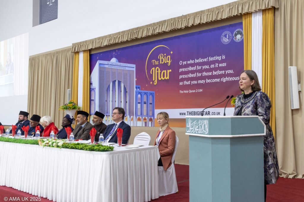 اللہ تعالیٰ کے فضل و کرم سے شعبہ تبلیغ جماعت احمدیہ برطانیہ نے ماہ رمضان المبارک کی مناسبت سے جماعت احمدیہ کی روایات کو اُجاگر کرنے، رمضان المبارک کے مقدس مہینے کی اہمیت، روزوں اور سحری و افطاری کے طریقہ کار کی آگاہی دینے کے لیے ایک انتہائی کامیاب پروگرام مورخہ ۱۵؍مارچ ۲۰۲۵ء بروز ہفتہ بمقام مسجد بیت الفتوح بِگ افطار کے عنوان سے منعقد کرنے کی توفیق حاصل کی جس میں ممبران پارلیمنٹ، سیاسی و مذہبی نمائندگان، کونسلرز، مختلف مقامی کمیونٹیز اور دیگر شعبہ ہائے زندگی سے تعلق رکھنے والے افراد سمیت ۸۰۰؍سے زائد مہمانان اور پانچ سو احمدی احباب شریک ہوئے۔ ایم پی فار مچم اینڈ مورڈن محترمہ شوان میکڈونا صاحبہ اورسابق ایم پی فار ووکنگ محترم جوناتھن لارڈ صاحب کو شمولیت کی خصوصی دعوت دی گئی تھی۔اس تقریب کو بھرپور طور پر کامیابی سے ہمکنار کرنے کے لیے مختلف اُمور کی انجام دہی میں تین سوانتظامی رضاکاران نے حصہ لیااور خدمت کی توفیق پائی۔ الحمدللہ علیٰ ذالک
