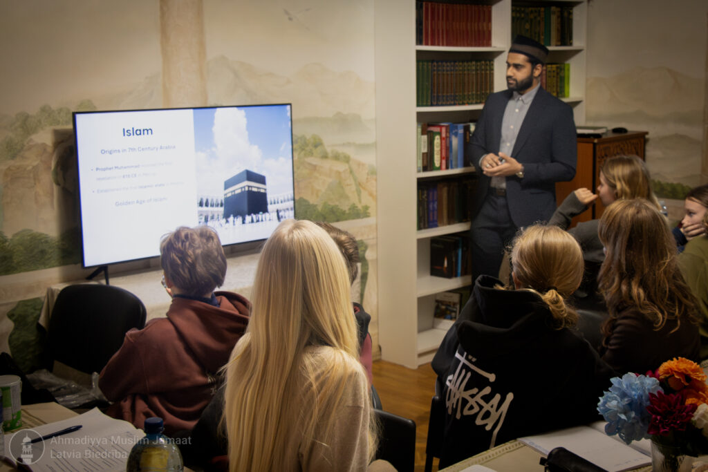 اللہ تعالیٰ کے فضل سے مورخہ ۱۰؍فروری ۲۰۲۵ء کو ’’انٹرنیشنل سکول آف ریگا‘‘ کی ساتویں کلاس کا گروپ، جو ۲۳ طلبہ اور تین اساتذہ پر مشتمل تھا، نے جماعت احمدیہ لٹویا کے مشن ہاؤس کا دورہ کیا۔