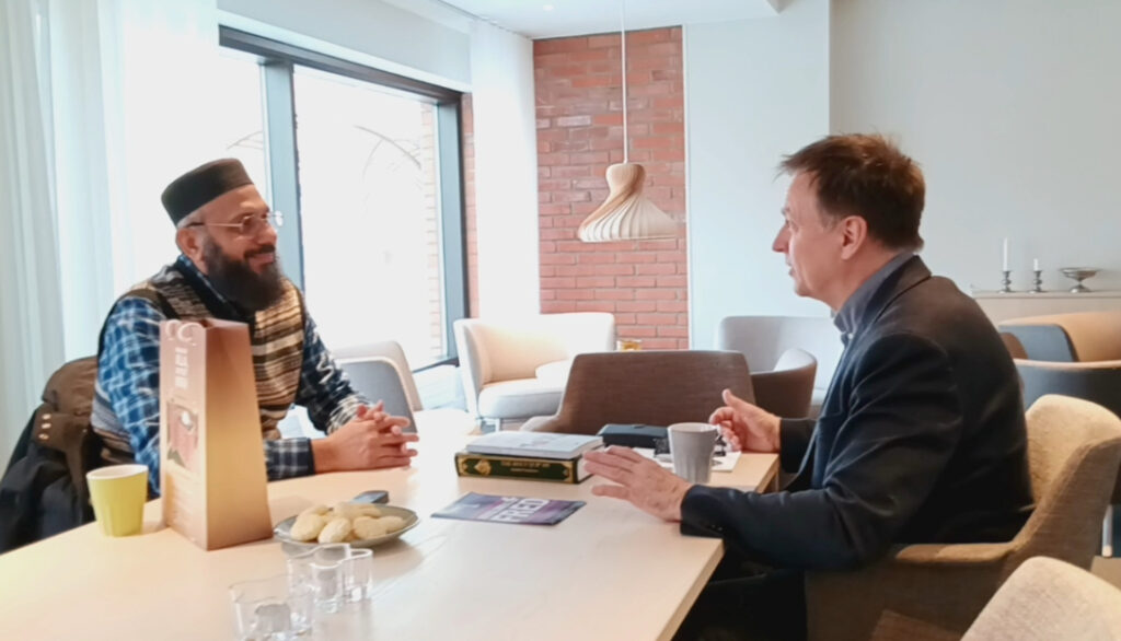 اللہ تعالیٰ کے فضل سے مورخہ ۲۷؍فروری کو مکرم صدیق احمد صاحب اور خاکسار (مربی سلسلہ) کی شیلیفتیو شہر کے میئر Lorents Burman صاحب سے ان کے آفس میں ملاقات ہوئی جو تقریباً ایک گھنٹے تک جاری رہی، جس میں جماعت کا تفصیلی تعارف کرایا۔ قرآن جلانے کی مذموم کوششوں کے حوالے سے جماعت احمدیہ کے پُرامن اور مثبت ردعمل پر تبادلہ خیال ہوا اور اس بات پر روشنی ڈالی گئی کہ جماعت احمدیہ کس طرح معاشرے میں امن قائم کرنے اور بین المذاہب ہم آہنگی کو فروغ دینے کے لیے سرگرم عمل ہے۔
