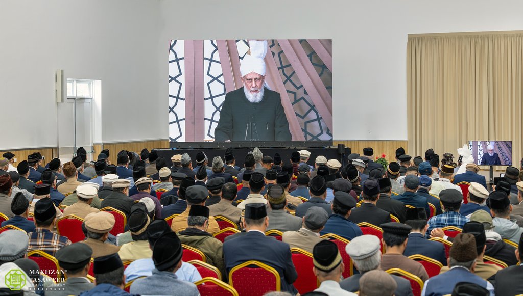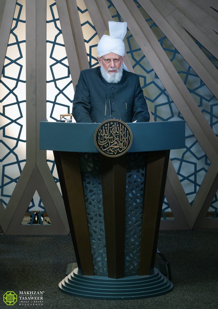 گیارہ بج کر ۴۱ منٹ پر حضور انور ایده الله تعالیٰ منبر پر تشریف لائے اور السلام علیکم ورحمۃ اللہ کا تحفہ عنایت فرمایا اور خطاب کا آغاز فرمایا۔ حضور انور نے انگریزی زبان میں خطاب فرمایا اور بعد ازاں اردو میں اس کا خلاصہ بھی بیان فرمایا۔