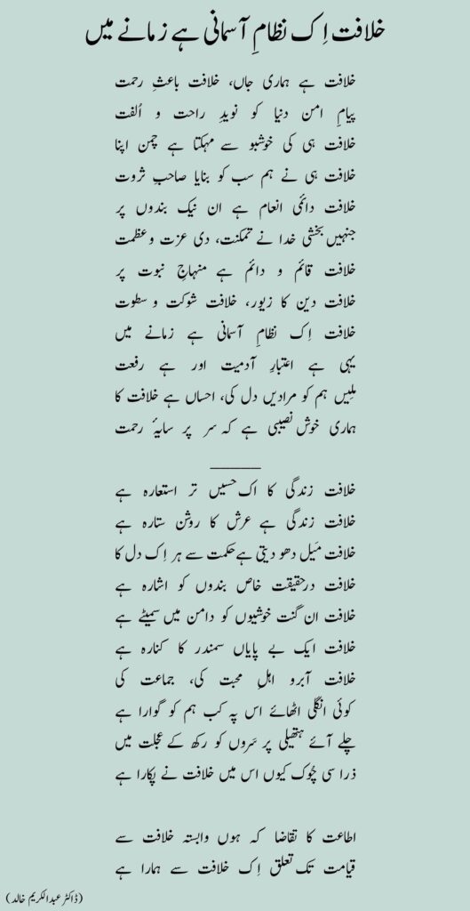 خلافت اِک نظامِ آسمانی ہے زمانے میں