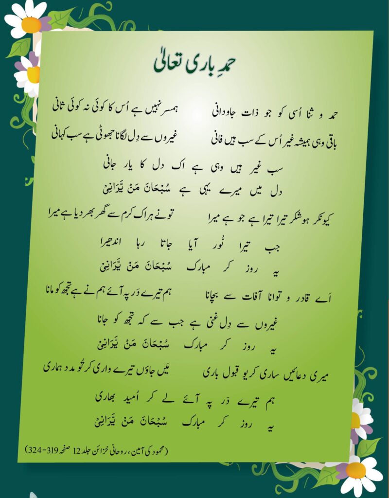 صفحۂ اول/بچوں کا الفضل/نظم/حمدِ باری تعالیٰ نظم حمدِ باری تعالیٰ29 جون 2025ء0 ایک منٹ سے بھی پہلے Facebook X WhatsApp Telegram Viber Share via Email Print 29 جون 2025ء0 ایک منٹ سے بھی پہلے Facebook X WhatsApp Telegram Viber Share via Email Print