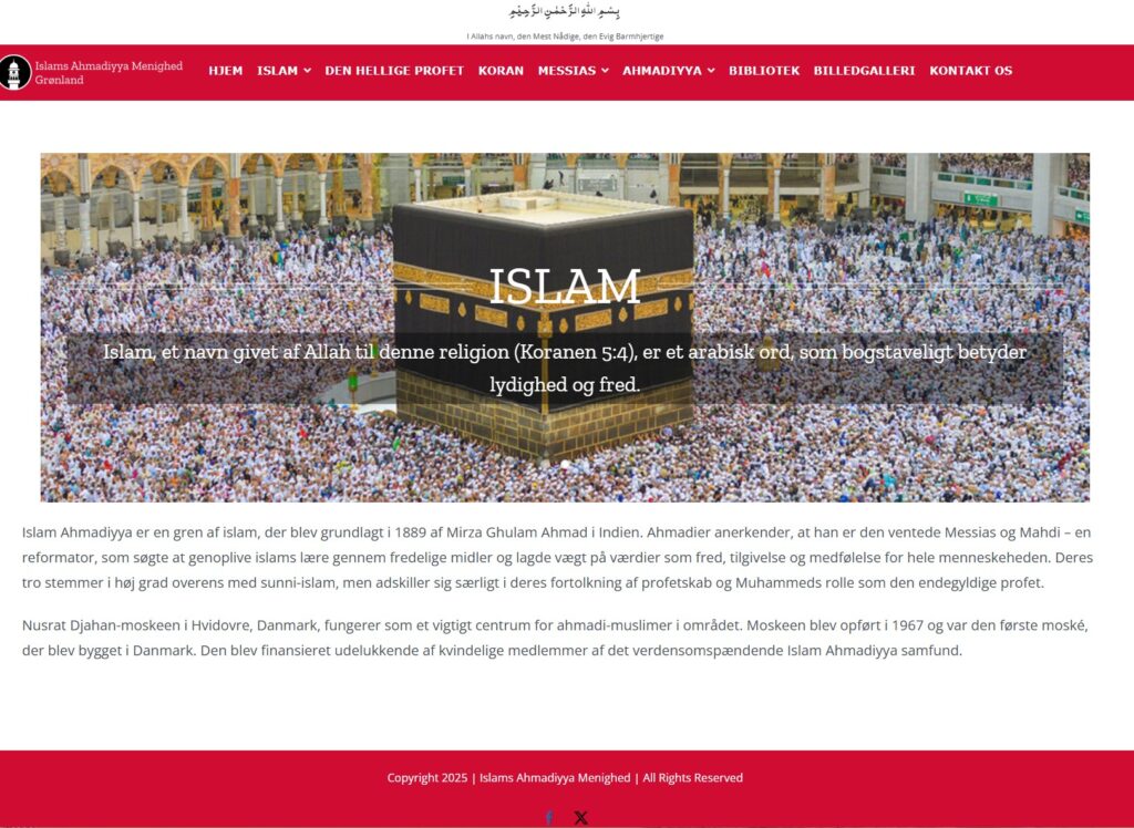 الحمدللہ، ۱۷؍جون ۲۰۲۵ء کویہ ویب سائٹ https://ahmadiyya.gl کے نام سے شروع کر دی گئی۔ گرین لینڈ کی سرکاری زبان گرین لینڈی ہے جبکہ تسلیم شدہ اقلیتی زبان ڈینش ہے۔ اس ليے ابتدائی طور پر یہ ویب سائٹ ڈینش زبان میں دستیاب ہے۔ ان شاء اللہ مستقبل میں اس کا گرین لینڈ کی مقامی زبان میں بھی ترجمہ کیا جائے گا تاکہ مقامی آبادی تک مؤثر انداز میں اسلام احمدیت کا پیغام پہنچایا جا سکے۔