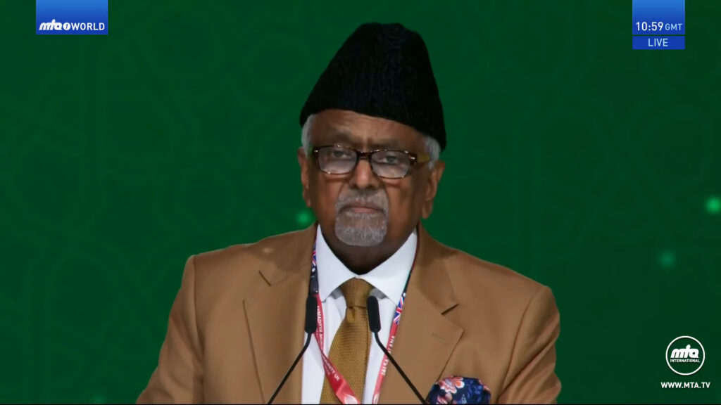 امیر صاحب نے اپنی تقریر کا خلاصہ پیش کرتے ہوئے کہا کہ خلافت احمدیہ کا نظام جو قادیان کے ایک چھوٹے سے گاؤں سے شروع ہوا تھا اب اسلام کے پرامن پیغام کو ہر براعظم تک پھیلا رہا ہے۔ یہ قیادت سیاست یا طاقت سے نہیں بلکہ دعا،قربانی اور الہٰی نصرت سے جنم لیتی ہے۔ ہر سال لاکھوں افراد خلافت کے ہاتھ پر بیعت کر کے احمدیت میں شامل ہوتے ہیں۔ امیر صاحب نے آخر پر زور دیا کہ بے شک ہم نے بہت ترقی کر لی ہے لیکن ہماری اصل کامیابی ہمارا اللہ تعالیٰ سے ذاتی مضبوط تعلق ہے۔ ہم میں سے ہر ایک کو اپنے آپ سے سوال پوچھنا چاہیے کہ