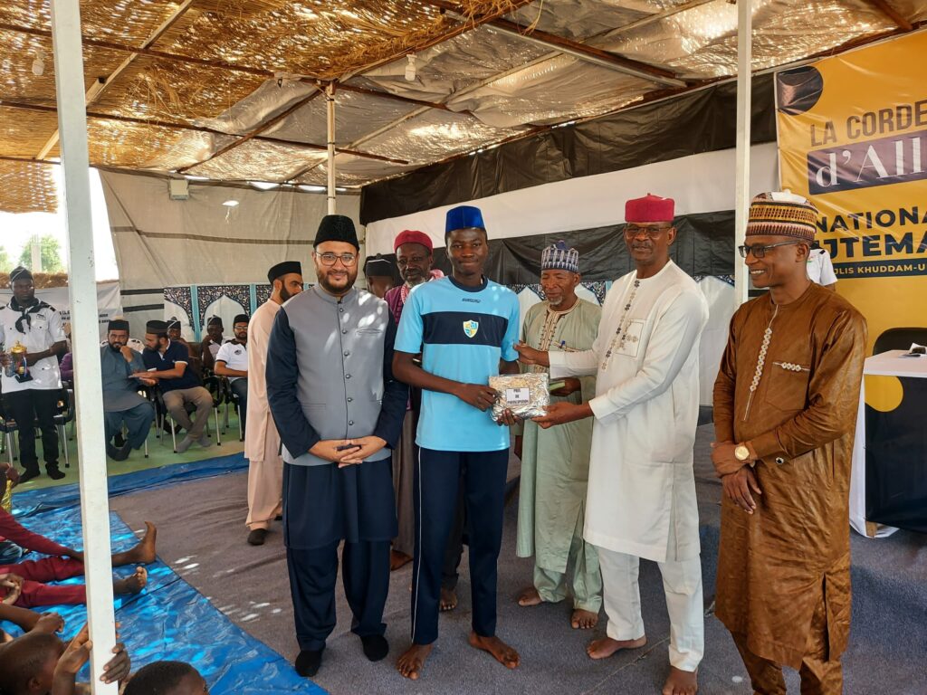 نائیجرکے طول و عرض سے خدام سالانہ اجتماع میں شمولیت کے لیے مورخہ۹؍مئی ۲۰۲۵ء کوریجن مارادی کے ڈیپارٹمنٹ گڈاں رومجی میں واقع محمد آباد تشریف لے آئے۔ بایں ہمہ نماز جمعہ سے قبل حضور انور ایدہ اللہ تعالیٰ کے خطبہ جمعہ کا براہ راست ایم ٹی اے پر ’ہاؤسا‘ زبان میں ترجمہ سنا گیا اور نماز جمعہ ادا کی گئی۔