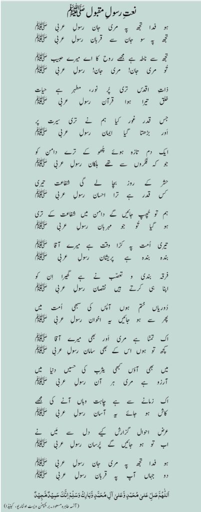 ہو فدا تجھ پہ مری جان رسولِ عربی ﷺ