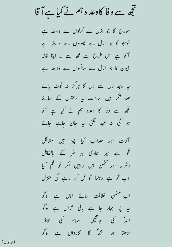 تجھ سے وفا کا وعدہ ہم نے کیا ہے آقا