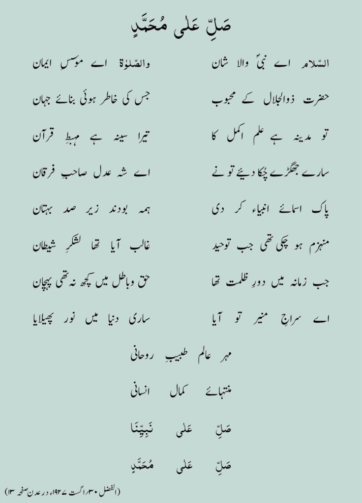 صفحۂ اول/منظوم کلام/کلام حضرت سیّدہ نواب مبارکہ بیگم صاحبہ رضی اللہ تعالیٰ عنہا/صَلِّ عَلٰى مُحَمَّدٍ کلام حضرت سیّدہ نواب مبارکہ بیگم صاحبہ رضی اللہ تعالیٰ عنہا صَلِّ عَلٰى مُحَمَّدٍ16 ستمبر 2025ء0 ایک منٹ سے بھی پہلے Facebook X WhatsApp Telegram Viber Share via Email Print 16 ستمبر 2025ء0 ایک منٹ سے بھی پہلے Facebook X WhatsApp Telegram Viber Share via Email Print
