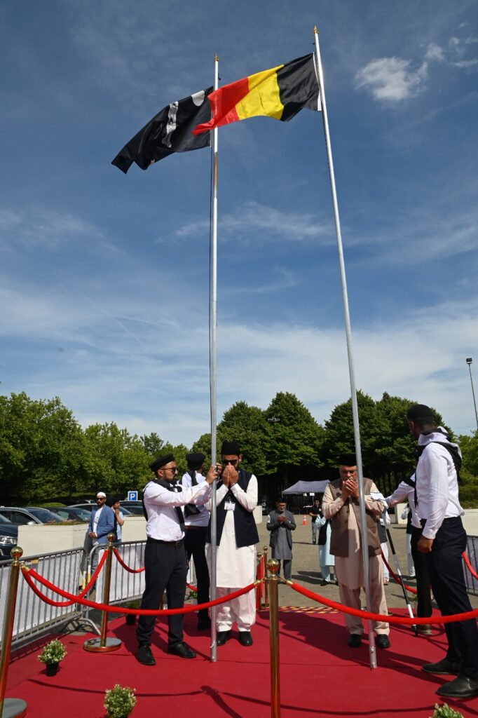 تقریب پرچم کشائی:جماعتی روایات کے مطابق پرچم کشائی کی پروقار تقریب ساڑھے چار بجے کے قریب منعقد ہوئی جس میں مکرم مبلغ انچارج صاحب اورمکرم ڈاکٹر ادریس احمد صاحب امیر جماعت احمدیہ بیلجیم نے لوائے احمدیت اور بیلجیم کا قومی پرچم لہرا یا۔ بعد ازاں مکرم امیر صاحب نے دعا کروائی۔ مجلس خدام الاحمدیہ کے مستعد خدام نے پرچم کی حفاظت کےلیے اپنی ڈیوٹی سنبھال لی۔