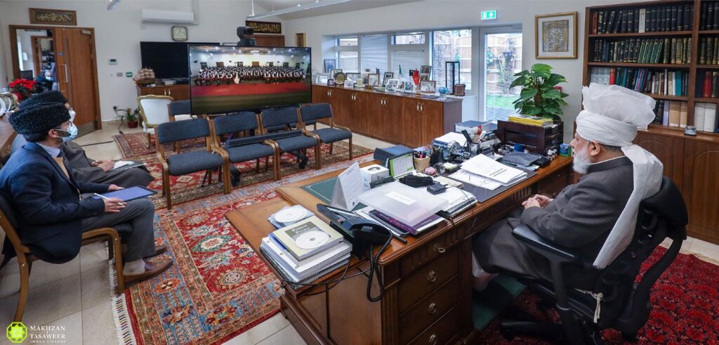اللہ تعالیٰ کے خاص فضل و کرم سے حضور انور ایدہ اللہ تعالیٰ بنصرہ العزیز کے ساتھ جامعہ احمدیہ انٹرنیشنل گھانا میں مورخہ ۵؍دسمبر ۲۰۲۰ء بروز ہفتہ ایک آن لائن ملاقات کا انعقاد کیا گیا اور یہ ملاقات ہر اعتبار سے بے انتہا مبارک رہی اور کامیابی سے مکمل ہوئی۔ حضور انور نے از راہِ شفقت اس ملاقات کے لیے ایک گھنٹے سے زائد وقت عنایت فرمایا۔