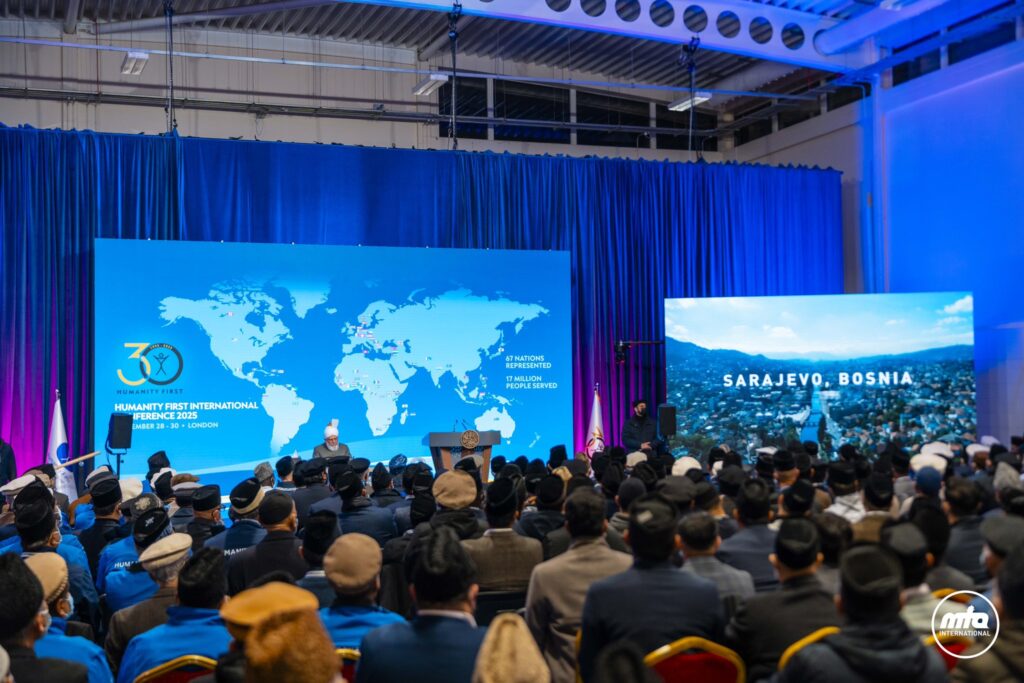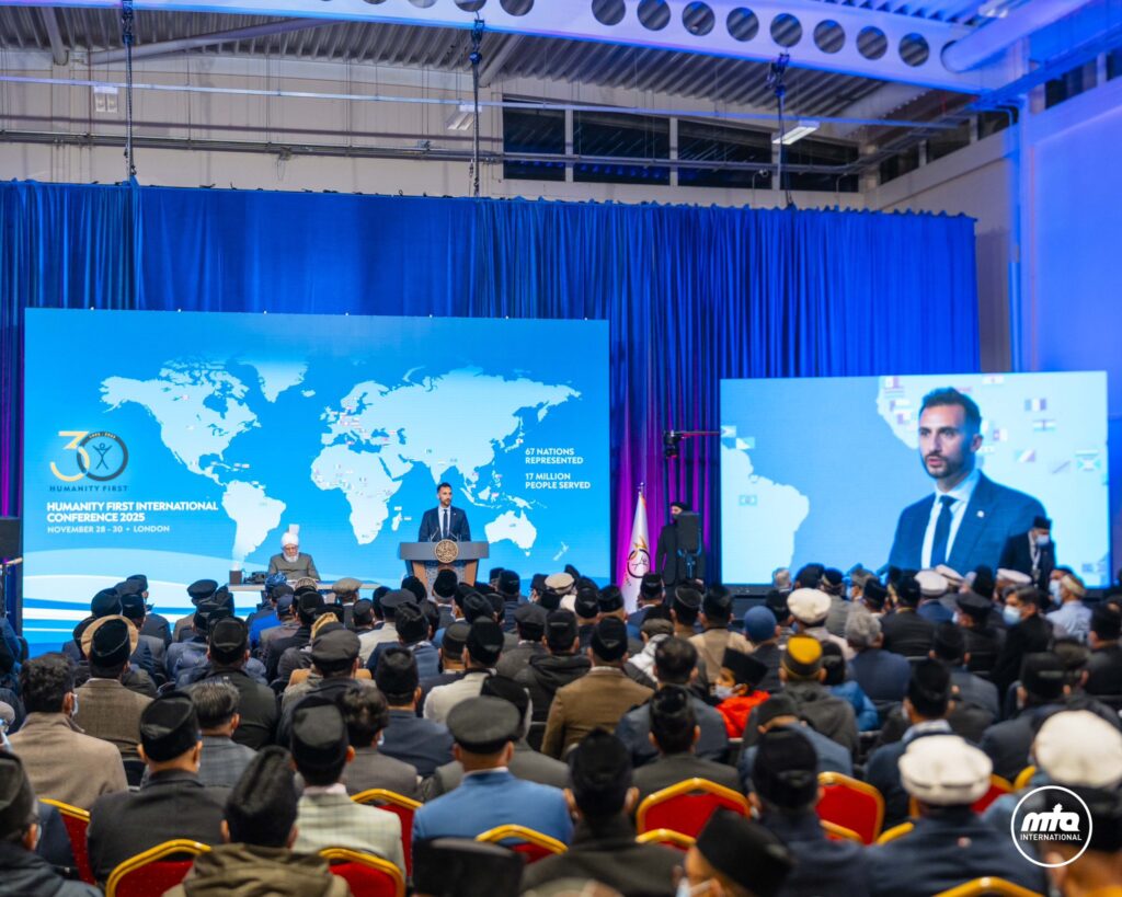 ہم اپنے پیارے امام حضرت امیر المومنین کے یہاں ہیومینٹی فرسٹ بین الاقوامی کانفرنس ۲۰۲۵ء میں موجود ہونے پر نہایت عاجزی اور سعادت کے جذبات محسوس کرتے ہیں۔ محض اللہ تعالیٰ کے فضل کے ساتھ آج ہم ہیومینٹی فرسٹ کے تیس برس مکمل ہونے کی خوشی میں یہاں جمع ہوئے ہیں، ایسی تین دہائیاں جو خدمت خلق، ایمان اور پیارے حضور کی راہنمائی سے عبارت ہیں۔ یہ سیشن تین روزہ بابرکت پروگرام کے اختتام پر منعقد ہو رہا ہے جو غور و فکر، شکر گزاری اور مستقبل کے لیے نئی امیدوں سے لبریز ہے۔ پچاس ممالک سے پانچ صد سے زائد نمائندگان نے ہر خطے کی نمائندگی کرتے ہوئے یہاں شرکت کی۔ جبکہ بیس سے زائد ممالک آن لائن شامل ہوئے۔ یہاں شاملین نے قدرتی آفات سے نجات، صحت، تعلیم، واٹرفارلائف، غذائی تحفظ اور سماجی بہبود جیسے شعبہ جات کا جائزہ لیا جن کے تحت دنیا بھر میں ایک کروڑ ستّر لاکھ سے زائد افراد کی زندگیوں میں بہتری لائے جا چکی ہے ۔ نمائندگان نے اس غیر معمولی سفر کو بھی یاد کیا جو ۱۹۹۲ء میں حضرت خلیفۃ المسیح رحمہ اللہ تعالیٰ کی دُور اندیش نگاہ سے شروع ہوا اور ہمارے پیارے حضور حضرت خلیفۃ المسیح الخامس ایدہ اللہ تعالیٰ بنصرہ العزیز کی مسلسل دعاؤں اور راہنمائی سے پھلتا پھولتا رہا۔