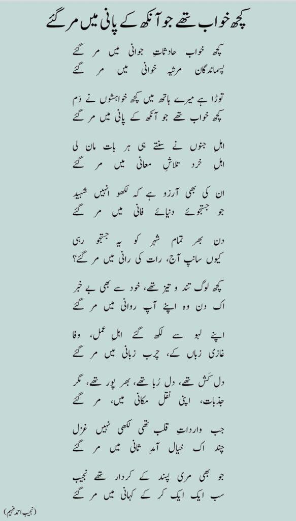 کچھ خواب تھے جو آنکھ کے پانی میں مر گئے