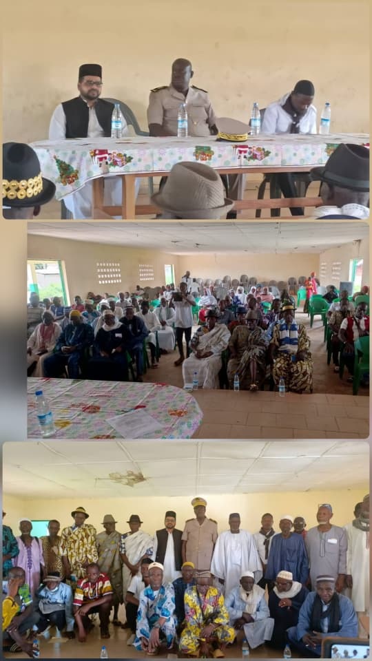 مکرم وارث علی صاحب مبلغ سلسلہ سینفرا تحریر کرتے ہیں کہ آئیوری کوسٹ میں ہر سال ۱۵؍نومبر کا دن قومی امن کے دن کے طور پر منایا جاتا ہے جس دوران آئیوری کوسٹ کے مختلف اضلاع میں جماعتی طور پر بھی امن کانفرنسز کا انعقاد کیا جاتا ہے۔ امسال بھی سینفرا ریجن میں مجلس خدام الاحمدیہ کے تحت اس کانفرنس کا انعقاد کیا گیا جس میں بلاامتیاز ہر قوم و ملت کو مدعو کیا جاتا ہے۔ امسال ریجن کے نائب گورنر برائے کوئے تینفلا کی خواہش پر کانفرنس کو سینفرا شہر سے ۱۳؍کلومیٹر دُور اسی قصبہ کوئے تینفلا میں منعقد کیا گیا۔