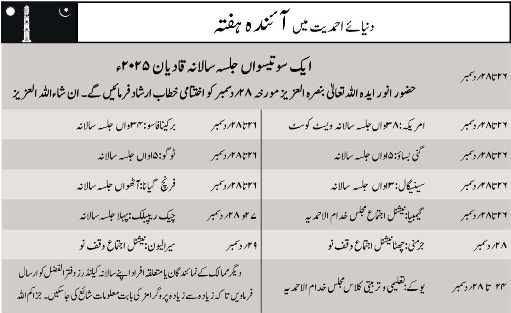 صفحۂ اول/عالمی خبریں/دنیائے احمدیت میں آئندہ ہفتہ/دنیائے احمدیت میں آئندہ ہفتہ دنیائے احمدیت میں آئندہ ہفتہ دنیائے احمدیت میں آئندہ ہفتہ26 دسمبر 2025ء0 ایک منٹ سے بھی پہلے Facebook X WhatsApp Telegram Viber Share via Email Print 26 دسمبر 2025ء0 ایک منٹ سے بھی پہلے Facebook X WhatsApp Telegram Viber Share via Email Print