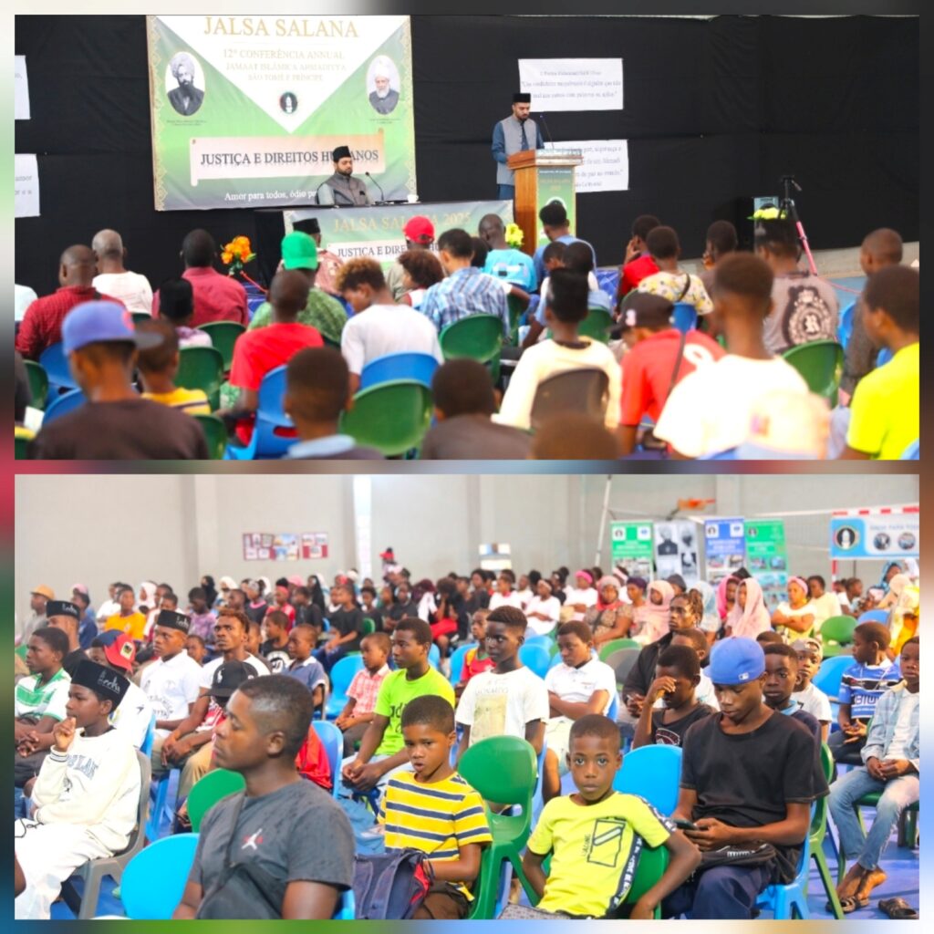 مکرم محمد اعزازالرحمٰن صاحب افسر جلسہ سالانہ ساؤتومے وپرنسپ تحریر کرتے ہیں کہ اللہ تعالیٰ کے خاص فضل سے مورخہ ۲۱؍دسمبر۲۰۲۵ء کو جماعت احمدیہ ساؤتومے و پرنسپ کو گوادالوپ (Guadalupe) شہر کے سکول کے فٹسال گراؤنڈ میں اپنا بارھواں جلسہ سالانہ ’’عدل و انصاف اور انسانی حقوق‘‘ کے مرکزی موضوع پر منعقد کرنے کی توفیق ملی۔ الحمدللہ علیٰ ذالک