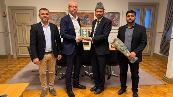 الله تعالیٰ کے فضل سے جماعت احمدیہ فن لینڈ کے ایک وفد نے فن لینڈ کے شہر Jyväskylä کے میئر جنابTimo Koivisto صاحب سے مورخہ ۱۹؍دسمبر ۲۰۲۵ء کو ملاقات کی۔ وفد میں مبلغ انچارچ مکرم شاہد محمود کاہلوں صاحب، صدر مجلس خدام الاحمدیہ مکرم فرید احمد صاحب اور نیشنل سیکرٹری تربیت مکرم بشارت الرحمان صاحب شامل تھے۔