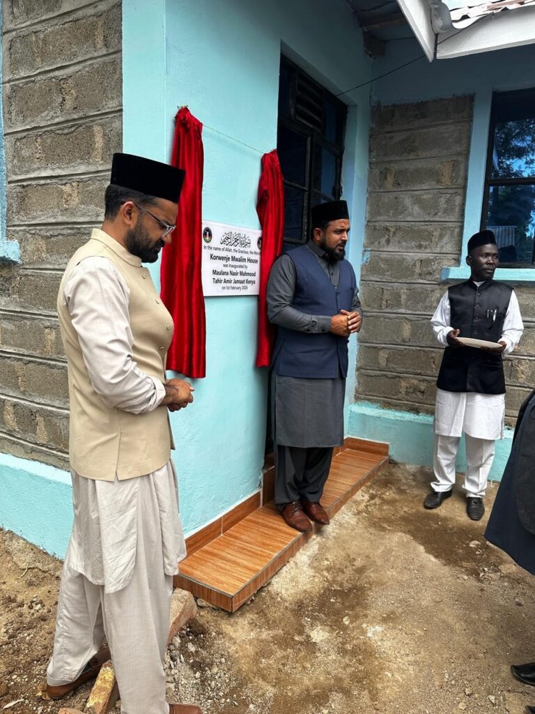 مکرم ناصر محمود طاہر صاحب امیر و مشنری انچارج کینیا نے مبلغین سلسلہ، معلمین کرام، مقامی اور نواحی جماعتوں کے احمدی احباب نیزمعززین علاقہ کی معیت میں ساڑھے گیارہ بجے اس کا افتتاح کیا۔ اس مبارک موقع پر مکرم امیر صاحب کی صدارت میں ایک مختصر پروگرام بھی ہوا جس میں تلاوت قرآن کریم اور منظوم کلام کے بعد صدر جماعت نے معزز مہمانوں کو خوش آمدید کہا جس کے بعد مقامی چیف اور کونسلر نے اپنے اپنے خیالات کا اظہار کیا اور مشن ہاؤس کی تعمیر پر جماعت کو مبارکباد دینے کے علاوہ مقامی مسائل کے حل اور لوگوں کی فلاح و بہبود کے لیے جماعت کے تعاون کو سراہا۔ بعدہٗ خاکسار (مبلغ سلسلہ)سمیت مختلف جماعتوں سے آئے ہوئے مہمانوں نے مختصر تقاریر کیں۔ پھر ریجنل انچارج مکرم فہیم احمد لکھن صاحب نے تقریر کی اور مہمانان کرام کو خوش آمدید کہنے کے علاوہ مشن ہاؤس کی تعمیر کی رپورٹ بھی پیش کی۔ آخر میں مکرم امیر صاحب نے اپنی تقریر میں خوبصورت مشن ہاؤس کی تعمیر پر مبارکباد دینے کے بعد احباب جماعت کو معلمین سے تعاون اور حصول علم کے لیے ان سے زیادہ سے زیادہ استفادہ کی تاکید کی۔ نیز آپ نے نمازوں کی ادائیگی اور دعوت الیٰ اللہ کی طرف بھی توجہ دلائی اور اختتامی دعا کروائی جس کے بعد مہمانوں کی کھانے سے تواضع کی گئی اور نماز ظہروعصر ادا کی گئی۔