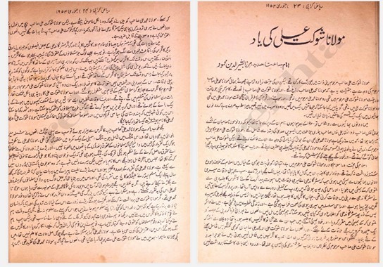 جناب رئیس احمد جعفری صاحب نے کراچی سے ماہنامہ ریاض نکالا اور اس کے ’’مولانا شوکت علی نمبر‘‘ کے لیے حضورؓ سے بھی مضمون کی درخواست کی۔ حضورؓ نے حسب فرمائش ایک مضمون ’’مولانا شوکت علی کی یاد‘‘ ارسال فرمایا جو اسی نمبر کے صفحہ ۲۳ تا ۲۵ پر زینت بنا۔ حضورؓ نے محترم رئیس جعفری صاحب کے نام مکتوب میں لکھا: