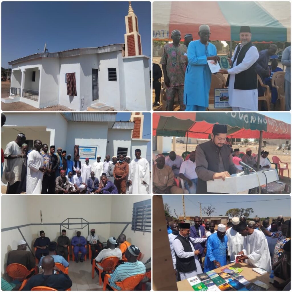 مسجد کا سنگ بنیاد ۲۰۱۷ء میں مکرم لقمان فریداحمد صاحب مبلغ سلسلہ نے رکھا جبکہ مسجد کی تعمیر کی نگرانی مکرم سلطان احمد صاحب مبلغ سلسلہ نے کی۔ مسجد کی تعمیر کی تکمیل سال ۲۰۲۳ء میں ہوئی اور ۲۰۲۴ء میں معلم سید یبے صاحب جو کہ گھانا سے پڑھ کے آئے تھے ان کا تقرر اس جماعت میں ہوا۔ اس مسجد کی تعمیر کے اخراجات مکرم رانا سعید احمد صاحب مقیم جرمنی کو اپنے والد محترم رانا سعادت احمد خان صاحب مرحوم سابق کارکن دفتر امانت تحریک جدید ربوہ کی طرف سے ادا کرنے کی توفیق ملی۔ مورخہ ۶؍فروری کو افتتاحی تقریب میں مکرم امیر و مبلغ انچارج نے مع مکرم کونے داؤد صاحب نائب امیر جماعت شرکت کی اور اسی طرح بعض اور اتھارٹیز نے بھی شرکت کی جس میں نائب گورنر کے نمائندہ اورچیف برائے کوروگو ریجن بھی شامل تھے۔