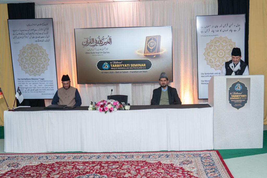 اللہ تعالیٰ کے فضل و کرم سےمجلس انصاراللہ جرمنی کی قیادت تربیت کے زیر اہتمام چوتھا آن لائن نیشنل تربیتی سیمینار سال رواں کے ماٹو ’’الخیر کلہٗ فی القرآن‘‘ یعنی تمام بھلائی قرآن میں ہے پر، مورخہ ۷؍مارچ ۲۰۲۶ء بروز ہفتہ بیت السبوح، فرینکفرٹ میں منعقد ہوا۔ الحمدللہ علیٰ ذالک