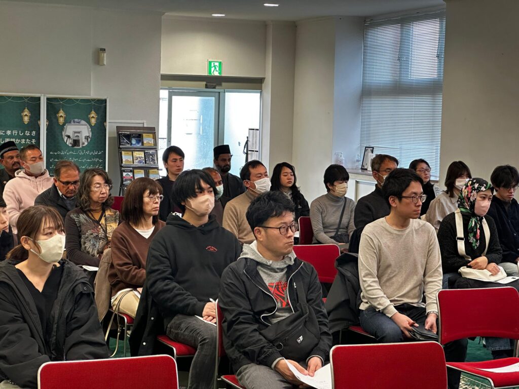 پروگرام کی صدارت مکرم انیس رئیس صاحب مبلغ انچارج جاپان نے کی۔ نشست کا آغاز مسجد کے مختصر مگر جامع تعارف سے ہوا جس میں مبلغ انچارج صاحب نے اسلام کی امن پسند تعلیمات اور مسجد کردار پر روشنی ڈالی۔ اس کے بعد مکرم حزقیل صاحب مبلغ سلسلہ نے ایک دلچسپ اور معلوماتی پریزنٹیشن کے ذریعہ ماہ رمضان، روزہ کی روحانی برکات اور اسلام کے پانچ بنیادی ارکان کے بارے میں نہایت سادہ اور مؤثر انداز میں تعارف پیش کیا۔