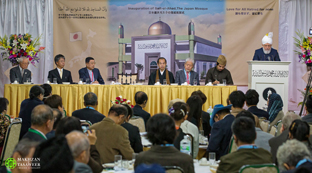 ہم جاپانی افراد کو بتانا چاہتے ہیں کہ اسلام وہ مذہب ہے جو ہمیں اپنے خالق کی پہچان کرنے اور اس سے تعلق قائم کرنے اور بنی نوع انسان کی خدمت کرنے کی تلقین کرتا ہے۔ آج سے انشاء اللہ یہ مسجد جو جاپان میں ہماری سب سے پہلی مسجد ہے، اس شہر میں اور تمام جاپان میں ہمیشہ یہی پیغام پہنچائے گی۔ اس کے مینار یہ اعلان کریں گے کہ اسلام امن ، تحفظ اور ہم آہنگی کا مذہب ہے۔ اسلام خداتعالیٰ اور ایک دوسرے کے حقوق ادا کرنے کا مذہب ہے۔ اب جبکہ یہ مسجد تعمیر ہو چکی ہے مجھے یقین ہے کہ مقامی احمدی اسلام کی کامل تعلیمات پرپہلے سے بھی بڑھ کر عمل کریں گے اورآپ سب پر اس کی حقیقت واضح کریں گے، انشاء اللہ۔ مقامی احمدی اسلام کی حقیقی اور اصل تعلیمات پر عمل کرنے والے اور ان کی تبلیغ کرنے والے ہوں گے اور ان لوگوں کے شکوک و شبہات دُور کریں گے جو یہ سمجھتے ہیں کہ اسلام ایک انتہا پسند مذہب ہے۔