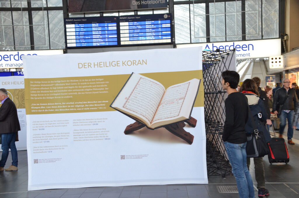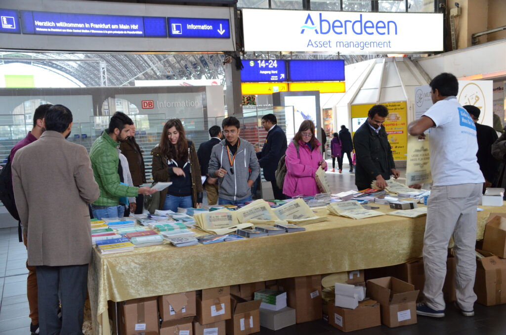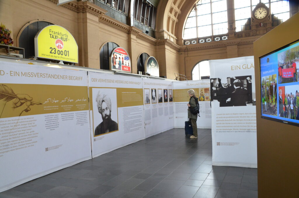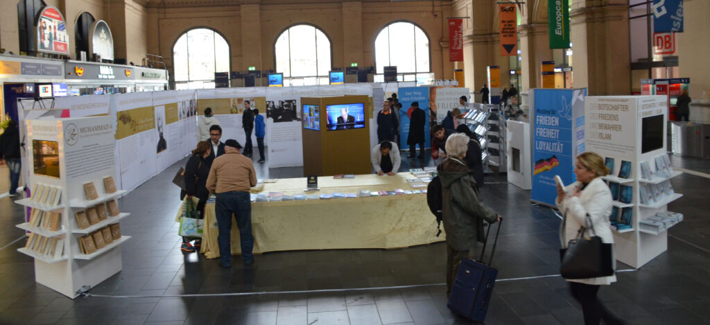 فرینکفرٹ کے مرکزی ریلوے اسٹیشن پر 9 اور 10نومبر 2015ء کو جماعت احمدیہ جرمنی کے زیر اہتمام اسلام کے امن اور محبت کے پیغام پر مشتمل شاندار نمائش کا انعقاد
