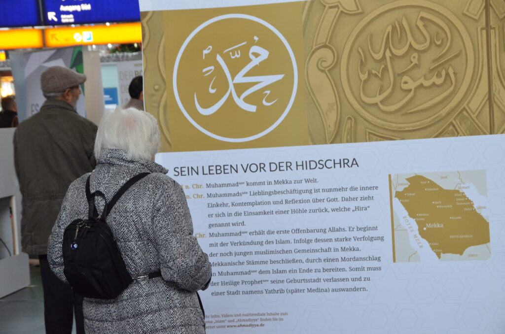اللہ کے فضل سے شعبہ تبلیغ جرمنی کی ایک لمبے عرصہ سے خواہش تھی کہ یہاں اسلام نمائش لگائی جائے۔مکرم مبین جاوید صاحب معاون شعبہ تبلیغ نے اس کی اجازت لینے کی مسلسل کوشش کی اور بالآخر ایک سال کی محنت کے بعد مختلف مراحل سے ہوتے ہوئے مورخہ9اور 10نومبر کو یہ نمائش لگانے کی اجازت مل گئی۔