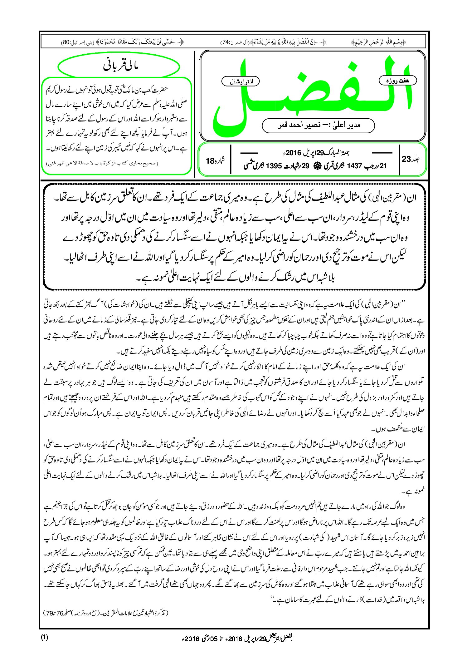 خطبہ جمعہ سیدنا امیر المومنین حضرت مرزا مسرور احمدخلیفۃ المسیح الخامس ایدہ اللہ تعالیٰ بنصرہ العزیز فرمودہ مورخہ یکم اپریل 2016ء