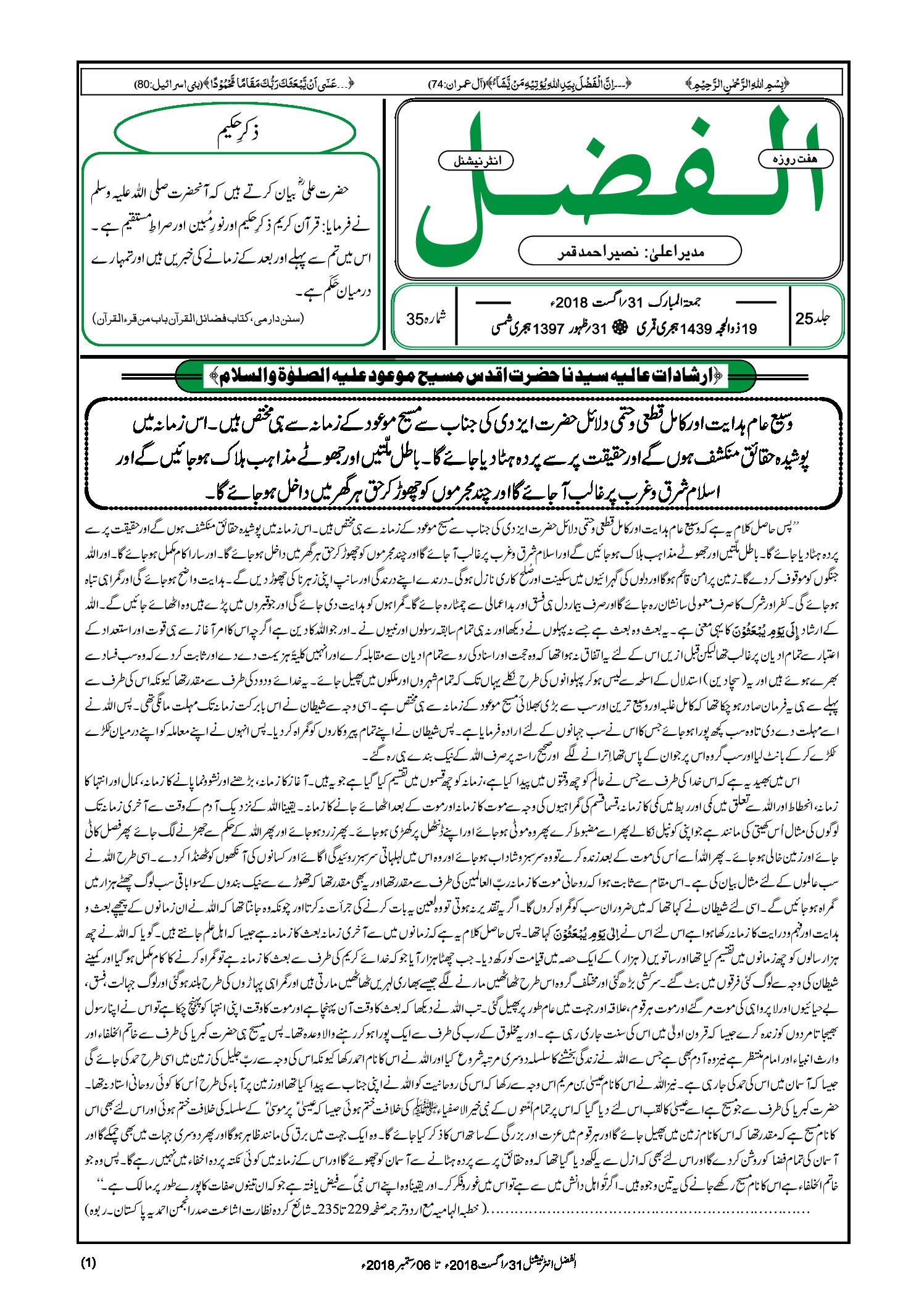 الفضل انٹرنیشنل کے شماروں کی حفاظت کریں یہ اخباردنیاوی آلائشوں سے بالاتر دینی اور دنیوی علوم کا خزانہ ہے ۔قومی…
