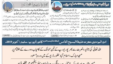 مکرم منیر احمد جاوید صاحب پرائیویٹ سیکرٹری اطلاع دیتے ہیں کہ 20؍دسمبر2019ء کو نماز ظہرو عصر سے قبل حضرت خلیفۃ…