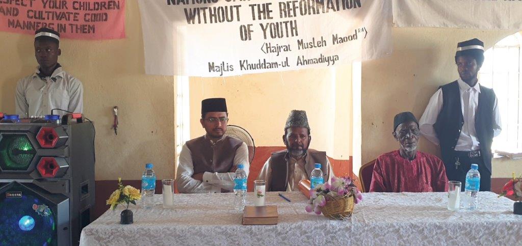 بعد ازاں بچوں کے ایک گروپ نے کورس میں نماز باترجمہ سنائی۔ مکرم حسن الحسین سانکو صاحب لوکل مشنری نے مہمانوں کا تعارف کروایا۔ بعد ازاں بچوں اور بچیوں نے اپنا اپنا وعدہ اطفال و ناصرات اور خدام عہد سنایا۔ اس کے بعد مکرم مبلغ انچارج صاحب نے قرآن کریم کا پہلا دور مکمل کرنے والوں سے قرآنِ کریم سُنا اور بچوں کے والدین اور جماعتی عہدیداران نے اسناد تقسیم کیں۔قرآنِ کریم کا پہلا دور مکمل کرنے والوں میں ۲ممبراتِ لجنہ، ۲ ناصرات، ۳ خدام اور ۴؍اطفال سمیت کل ۱۱؍افرادشامل تھے۔