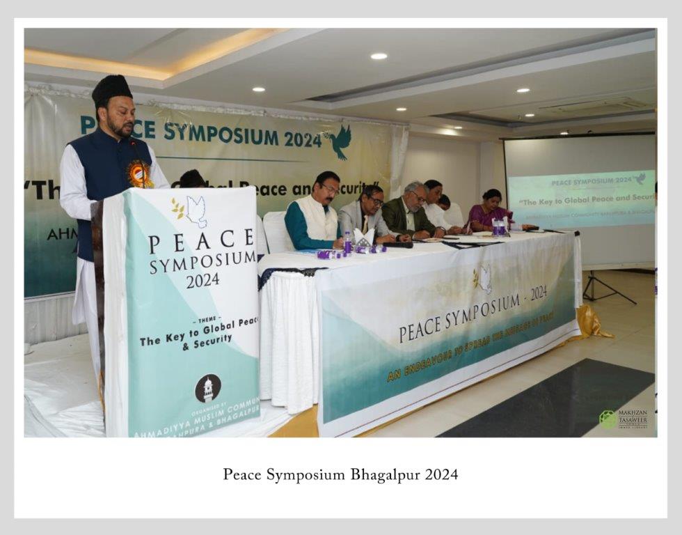 مورخہ ۱۰؍مارچ ۲۰۲۴ء کو صوبہ بہار کے تیسرے سب سے بڑے شہر بھاگلپور میں’’Hotel Vaibhav‘‘ میں جماعت احمدیہ کی طرف سے پیس سمپوزیم کا انعقاد زیر عنوان ’’عالمی امن اور حفاظت کی کنجی‘‘ منعقد کیا گیا۔ یہ پیس سمپوزیم زیر صدارت مکرم امیر صاحب جماعت احمدیہ ضلع بھاگلپور، مونگیر و بانکا منعقد ہوا۔