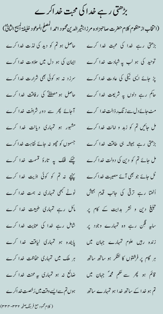 (انتخاب از منظوم کلام حضرت صاحبزادہ مرزا بشير الدين محمود احمد المصلح الموعود خليفة المسيح الثانیؓ)