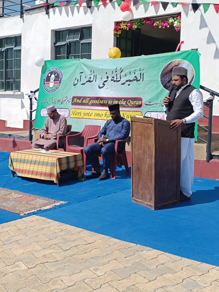 https://youtu.be/WbC75YAwGhs محض اللہ تعالیٰ کے فضل و کرم سے جماعت احمدیہ کینیاکو سالِ نو کے آغاز پر مورخہ یکم جنوری ۲۰۲۵ءبروز بدھ نکورو(Nakuru) احمدیہ مشن میں مدرسۃ الحفظ کینیا کا افتتاح کرنے کی توفیق ملی۔ الحمدللہ علیٰ ذالک یاد رہے کہ جماعت احمدیہ کینیا کو تاریخ میں پہلی بار حفظ کلاس کے آغاز و اجرا کی توفیق مل رہی ہے۔ اس کلاس کے ليے حضور انور ایدہ اللہ تعالیٰ بنصرہ العزیز نے مکرم حافظ سعید انڈم صاحب مربی سلسلہ گھانا کا بطور مدرس تقر ر فرمایا ہے۔ ماہ دسمبر۲۰۲۴ءمیں جلسہ سالانہ کے موقع پر مدرسۃ الحفظ کے لیے طلبہ کے انٹرویوز ہوئے جس کے بعد دس طلبہ کو مدرسۃالحفظ کی پہلی تاریخی کلاس میں داخلہ کی سعادت ملی۔ نیز دیگر بہت سارے بنیادی امور پر پہلے سے مکرم ناصر محمود طاہر صاحب امیر و مبلغ انچارج کینیاکی خصوصی ذاتی توجہ اور ہدایات پر کام مکمل کیا جا چکا تھا جس میں سٹاف کا انتخاب ان کی رہائش، طلبہ کا ہوسٹل، کچن، ڈائننگ ہال، کلاس رومز، دفتر، طلبہ کے یونیفارم اور کھیلنے کے لیے گراؤنڈ وغیرہ شامل ہیں۔ نیز طلبہ کے لیے حفظ کے حوالے سے خاص فارمیٹ میں شائع شدہ قرآن کریم کی چند کاپیاں بطور برکت قادیان دارالامان سے منگوائی گئی ہیں۔ فالحمدللہ علیٰ ذالک مورخہ یکم جنوری ۲۰۲۵ءبروز بدھ صبح دس بجے نکورو مشن کے احاطہ میں اس بابرکت تقریب کاانعقاد ہوا۔ تقریب کے آغاز میں مکرم امیر صاحب نے مدرسۃ الحفظ کے داخلی دروازے پر افتتاحی فیتہ کاٹ کر اجتماعی دعا کرائی۔ اس کے بعد تلاوت قرآن کریم و ترجمہ اور نظم سے تقر یب کا باقاعدہ آغاز ہوا۔ بعدازاں مکرم شیخ سمیر احمد صاحب نائب امیر اوّل نے ’’قرآن کریم کی اہمیت و برکات‘‘ کے موضوع پر تقریر کی۔ بعدہٗ مکرم امیر صاحب نےاپنی افتتاحی تقریر میں حضرت مسیح موعودؑ کی بعثت کی اغراض میں سے حفاظت قرآن کریم کا ذکر کیا۔ نیز ان تمام احباب کا شکریہ ادا کیا جنہوں نے اس ادارے کے قیام میں کسی بھی رنگ میں معاونت پیش کی اور ادارےکی کامیابی کے لیے تمام حاضرین سے دعا کی درخواست کی۔ دعا کے ساتھ یہ مبارک تقریب اختتام پذیر ہوئی۔ دعا کے بعد طلبہ و سٹاف کے ساتھ نیشنل مجلس عاملہ اور حاضرین تقریب کے گروپ فوٹوز بنوائے گئے اور تمام حاضرین میں شیرینی تقسیم کی گئی۔ (رپورٹ:احمد عدنان ہاشمی۔نمائندہ الفضل انٹرنیشنل)
