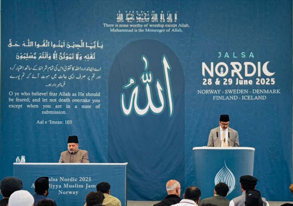 (اوسلو، ناروے ۲۹؍جون ۲۰۲۵ء، نمائندگان الفضل) اللہ تعالیٰ کے فضل سے امسال نارڈک ممالک (ناروے، سویڈن، فن لینڈ، ڈنمارک اور آئس لینڈ) کا جلسہ سالانہ مورخہ ۲۸ و ۲۹؍جون ۲۰۲۵ء کو مسجد بیت النصر، اوسلو ناروے میں منعقد ہوا۔ الحمد للہ