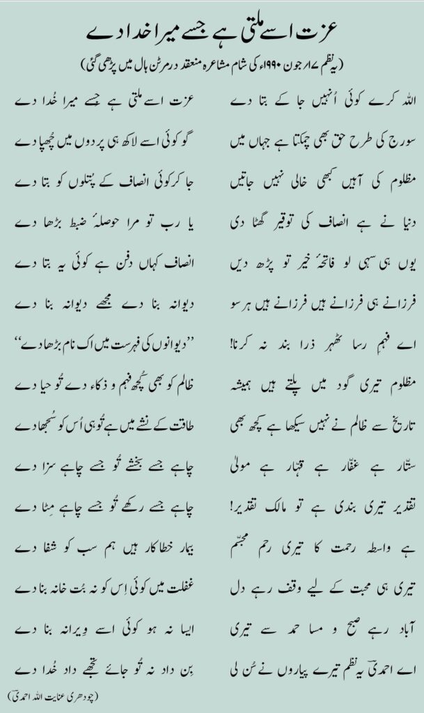 عزت اسے ملتی ہے جِسے میرا خُدا دے