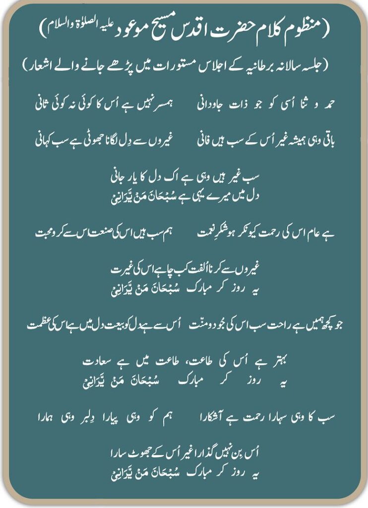 منظوم کلام حضرت اقدس مسیح موعودعلیہ الصلوٰۃ والسلام