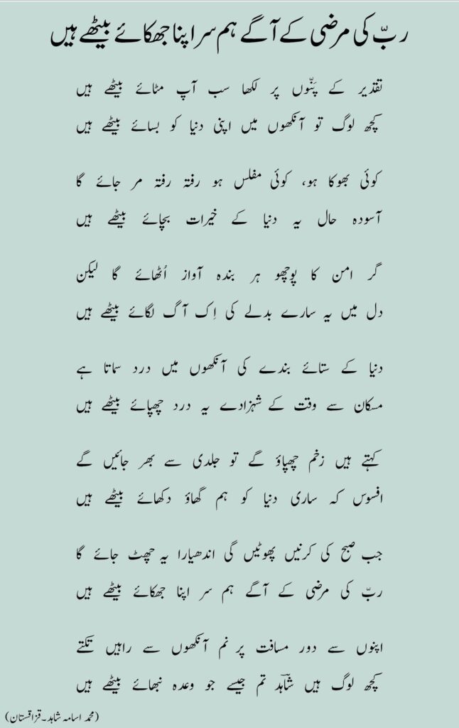ربّ کی مرضی کے آگے ہم سر اپنا جھکائے بیٹھے ہیں