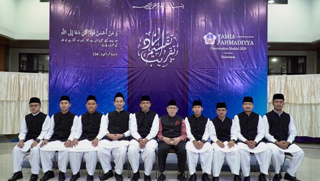 اللہ تعالیٰ کے فضل سے جامعہ احمدیہ انٹرنیشنل انڈونیشیا میں مورخہ ۱۴؍جون ۲۰۲۵ء بروز ہفتہ بعد نمازِ مغرب تقریبِ تقسیمِ اسناد منعقد ہوئی جس میں جامعہ کے ۸؍طلبہ کو شاہد کی ڈگری سے نوازا گیا۔ اسی طرح ایک طالب علم کو بھی سند دی گئی جس نے قرآنِ کریم مکمل حفظ کرنے کی سعادت حاصل کی۔