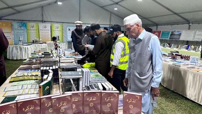 بک اسٹال اور قرآن کریم کے پچاس زبانوں میں ترجموں کی نمائش اور جماعتی نمائش کاخوبصورت اہتمام
